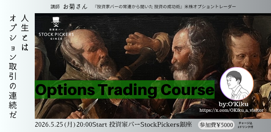 講師は投資家バーオプション取引講師で、書籍『投資家バーの常連客から聞いた投資の成功術』にも登場したお菊さんです。